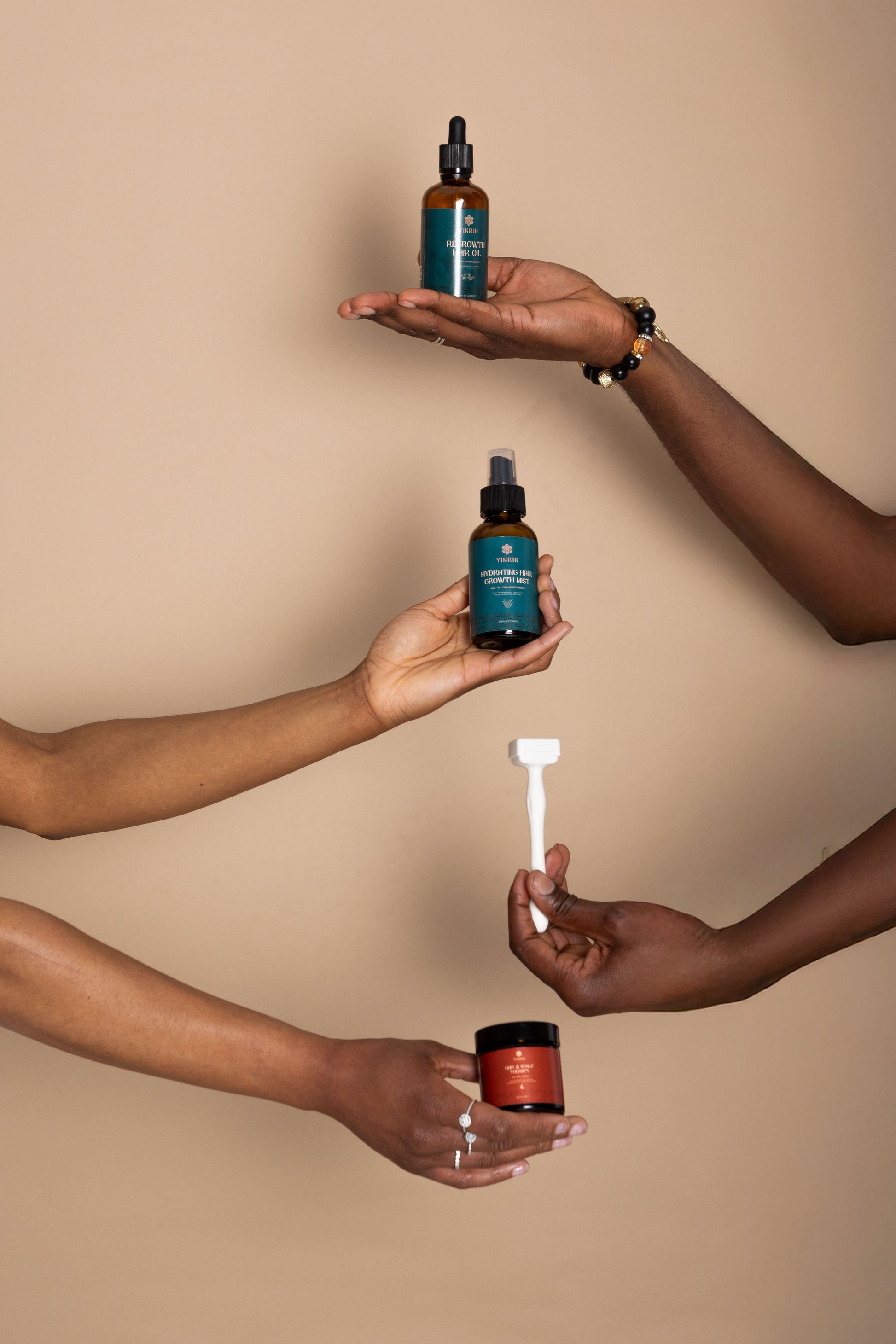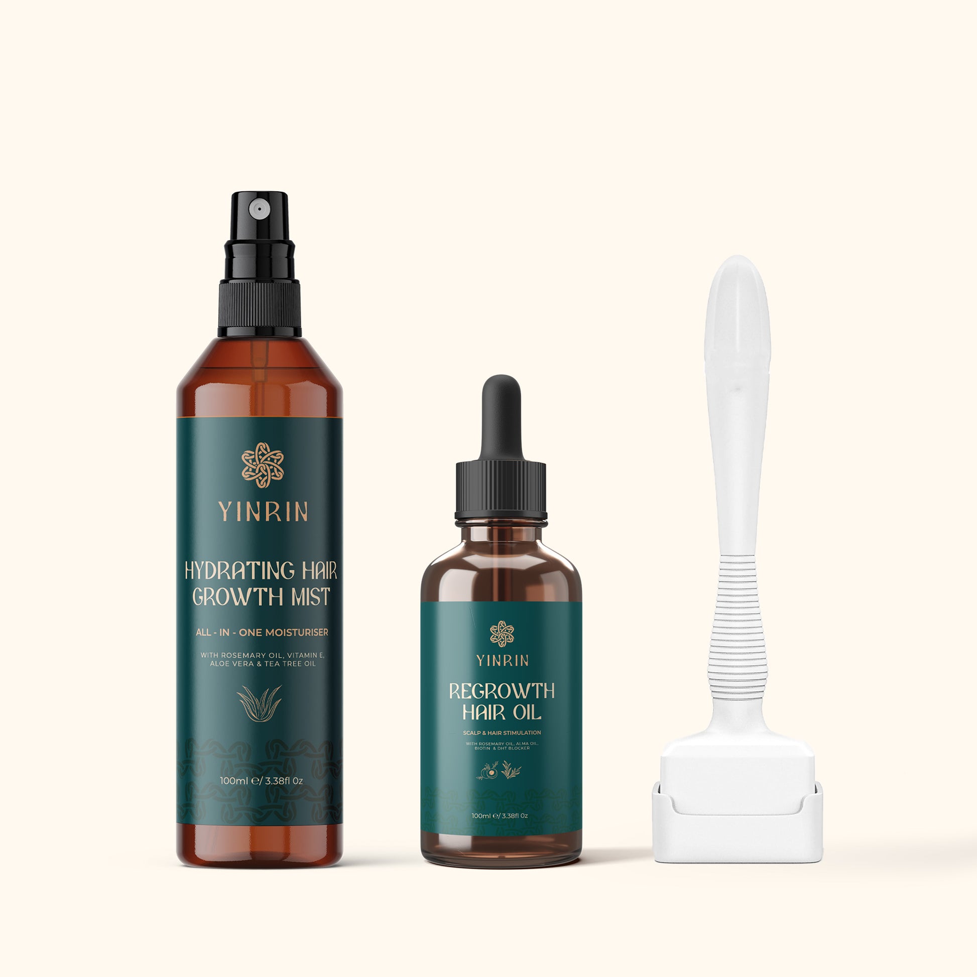 Our All-In-One Hair Regrowth Bundle is the perfect combination for healthy or struggling hair. The microneedling derma stamp kit for a concentrated penetration of nutrients into stagnant skin for hair growth. When coupled with our regrowth hair oil a perfect synergy is made for your hair. The concentrated, nutrient-rich formula helps address multiple hair concerns from hair loss to dry scalp. Our hydrating hair growth mist maintains and locks in all the active ingredients as well as fighting against dandruff.